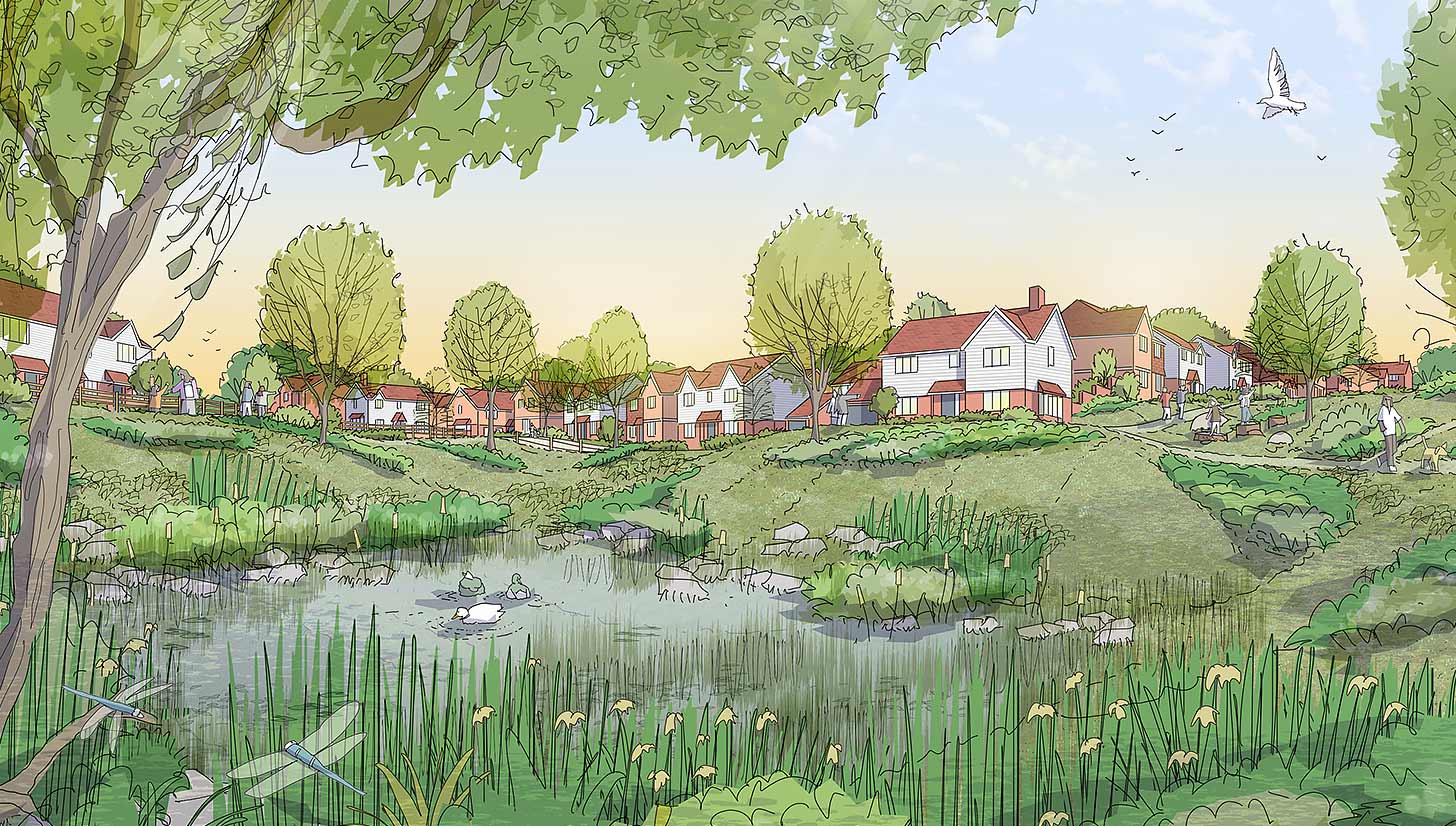 - Retention of mature trees across the site and increase in biodiversity net gain throughout.